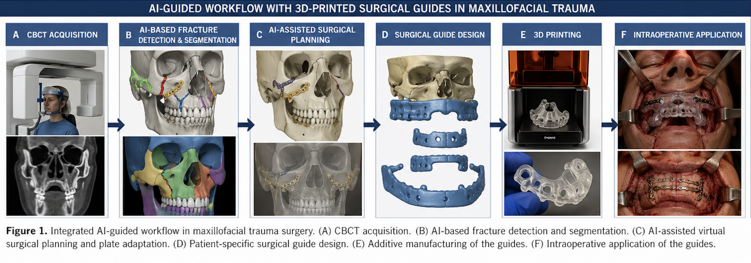 Artificial intelligence has emerged as a transformative technology in maxillofacial trauma, demonstrating high accuracy in fracture detection, decision support, and surgical planning [1–8]. Previous studies have shown that AI-based systems can achieve sensitivities exceeding 97% and significantly improve diagnostic efficiency [1,2]. Furthermore, feasibility studies have demonstrated the successful integration of AI-driven planning into clinical workflows using patient-specific 3D-printed surgical guides.