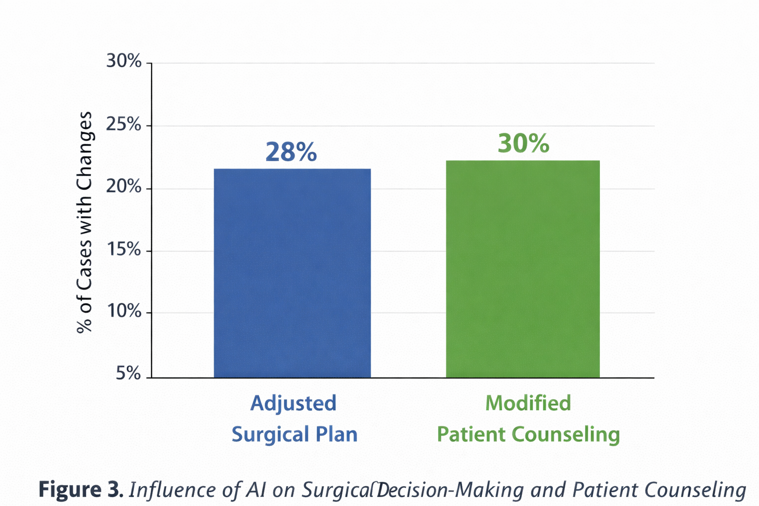 Clinical assessment and surgical planning were initially performed by the treating surgeon without AI assistance and subsequently reassessed with AI support. Diagnostic findings, time-to-decision, and potential changes in surgical planning were prospectively documented. Final treatment decisions remained under full responsibility of the surgeon Table 1.